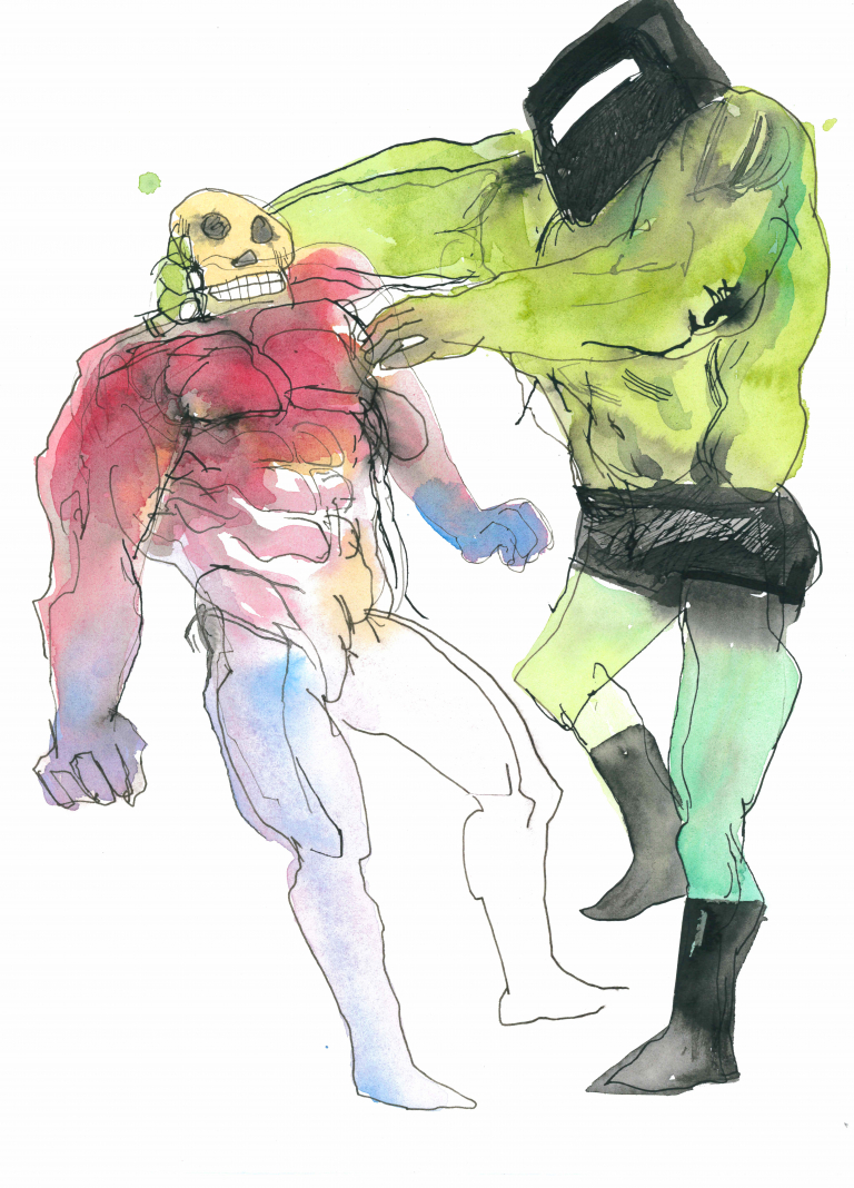 - PAINTED CLAY WRESTLER